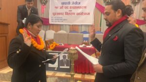 काठमाडौं २५ । धापासी जेसीजको नवनिर्वाचित कार्यसमितिले पदभार ग्रहण गरेको छ । बिहिबार आयोजित एक समारोहबीच धापासीं जेसीज वर्ष २०२४ का अध्यक्ष प्रबल गौतमले वर्ष २०२५ का अध्यक्ष सुजिना डंगोल लाई पदभार हस्तान्तरण गरेका हुन् ।