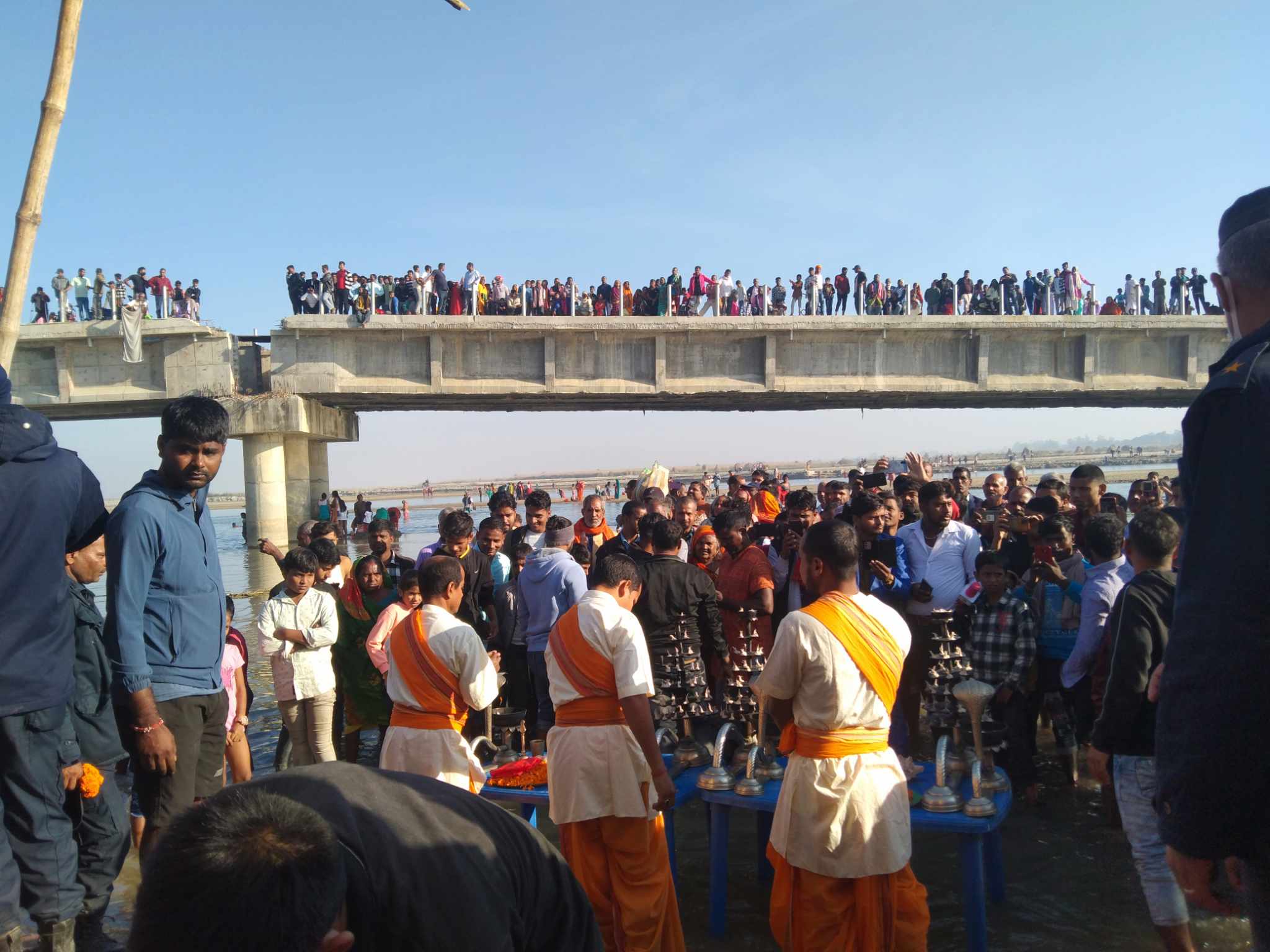 कमला नदीमा आज बिहानैदेखि स्नान गर्ने श्रद्धालु, भगता र धामीझाक्रीहरुको घुइँचो लागेको हो ।