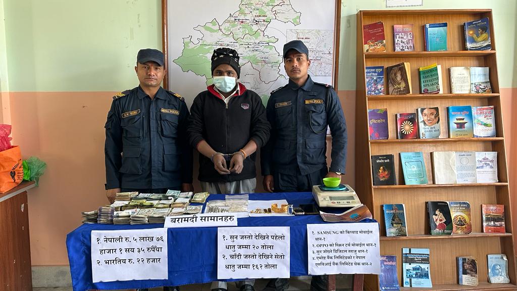 प्रहरीले उनको साथवाट बिल नभएको २२ लाख ६१ हजार ९०१ रुपैयाँ बराबरको २३५।९ ग्राम सुन बरामद गरेको छ । साथै २ लाख ४३ हजार २६५ रुपैयाँ बराबरको १९०१।२६ ग्राम चाँदी र स्रोत नखुलेको ५ लाख ७३ हजार १३५ रुपैयाँ र २२ हजार भारतीय रुपैयाँ पनि बरामद गरेको प्रहरीले जनाएको छ ।