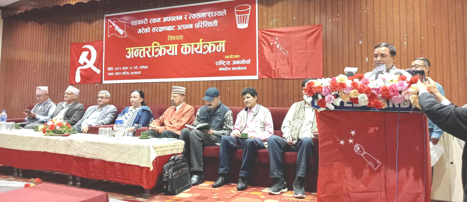 काठमाडौँ । राष्ट्रिय जनमोर्चाले अन्तर्राष्ट्रिय सहकारी दिवसको अवसर पारेर “सहकारी रकम अपचलन र त्यसमा राज्यले गरेको संरक्षणबाट उत्पन्न परिस्थिति” विषयक अन्तरक्रिया कार्यक्रम सम्पन्न गरेको छ ।