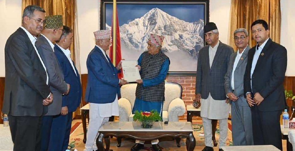 राष्ट्रपतिले संविधानको धारा ७६(२) अनुसार सरकार गठनका लागि आह्वान गरेलगत्तै कांग्रेसका सभापति एवं संसदीय दलका नेता शेरबहादुर देउवासमेतको हस्ताक्षरमा ओलीले प्रधानमन्त्रीको दाबी पेश गरेका हुन्।